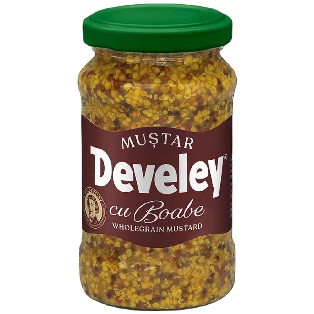 Ingrediente: apă potabilă, semințe de muștar, condimente, zahăr, sare de masă, arome naturale. Fără conservanți, agenți de îngroșare sau coloranți adăugați. Produsul poate elibera apă în timpul depozitării – fenomen natural. Amestecați înainte de utilizare.